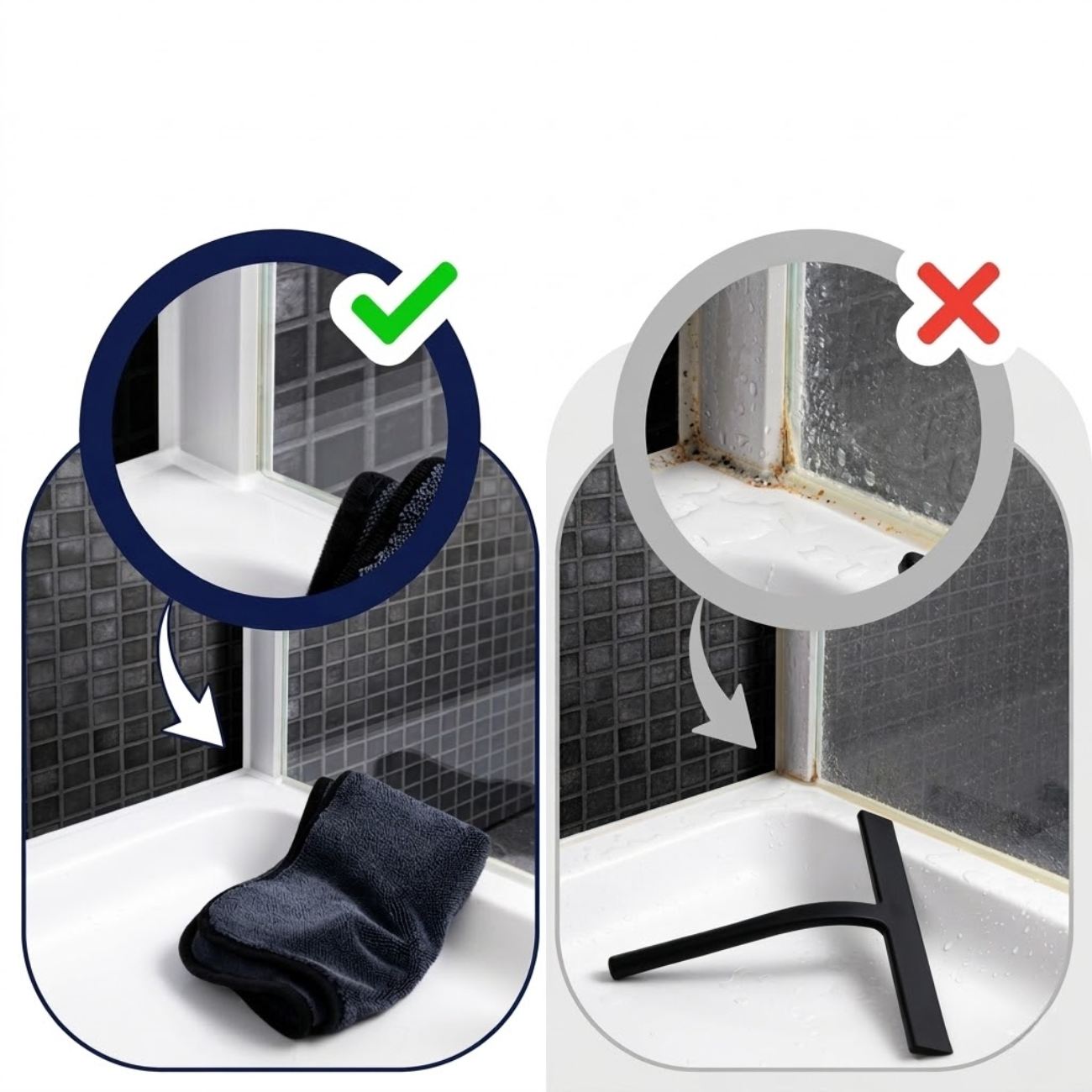 Ett snabbt svep efter duschen räcker för att stoppa kalk och vattenfläckar innan de fastnar.